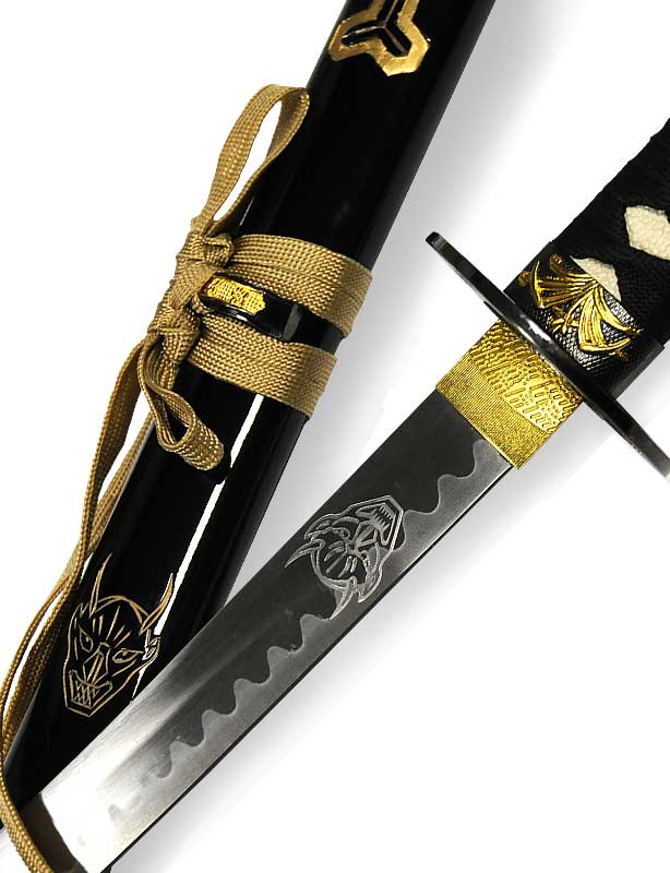 Chaque détail de cette réplique a été soigneusement reproduit pour vous offrir une expérience authentique. Le saya (fourreau) est magnifiquement orné d’une tête de démon dorée, ajoutant une touche de sophistication et d’élégance à cet objet d’exception. Vous serez émerveillé par la précision et la finesse des gravures, qui témoignent du souci du détail apporté à cette réplique.