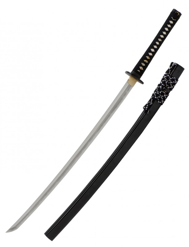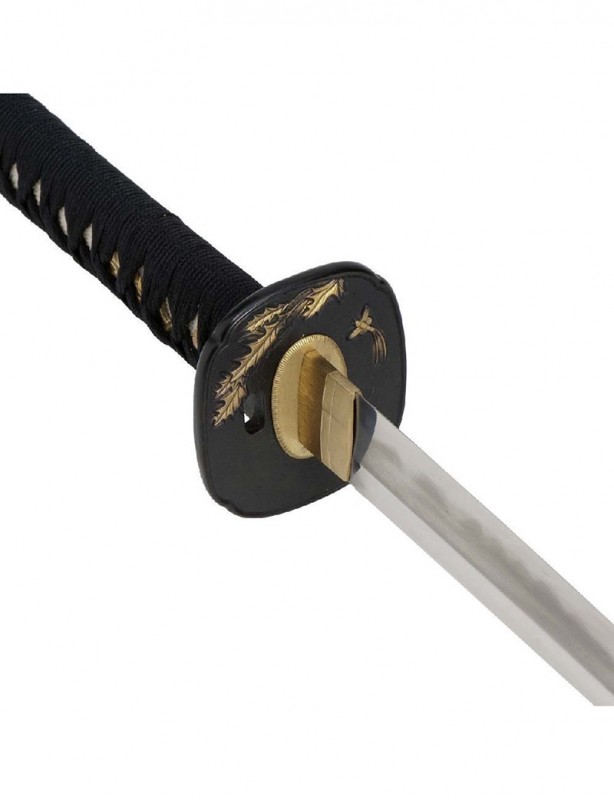Forgé à la main selon la technique ancestrale du Kobuse, le Katana Kōraku associe un noyau en acier doux à faible teneur en carbone à une enveloppe d’acier au carbone 1095, pliée douze fois pour créer plus de 8 000 couches (hada). Cette structure composite, typique des sabres haut de gamme, confère à la lame une résistance exceptionnelletout en maintenant une flexibilité optimale. Le polissage expert fait ressortir un hamon naturel (ligne de trempe) et un reflet miroir sur le dos de la lame, témoignant d’un travail de maître.