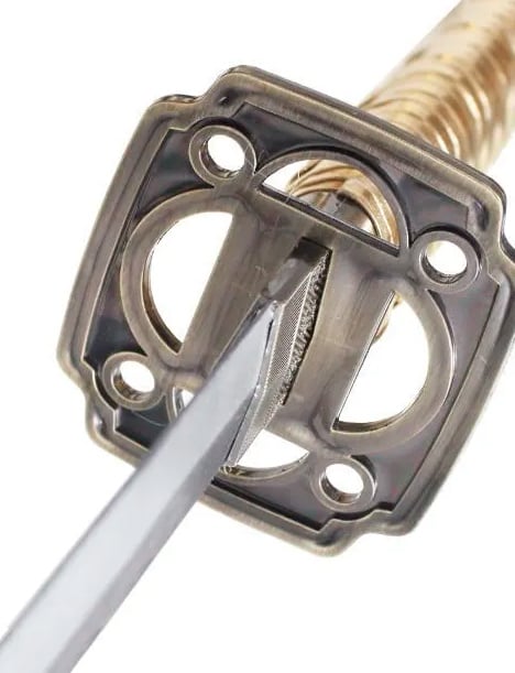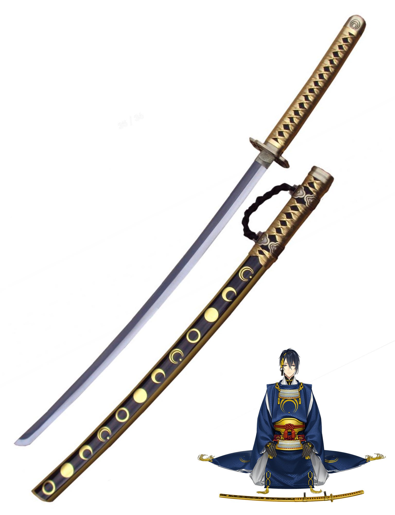 Le katana de Mikazuki Munechika est un personnage emblématique des manga, ce katana Mikazuki munechika est une œuvre d’art forgée avec maestria. Ce sabre japonais incarne l’élégance et la puissance caractéristiques du légendaire guerrier. Sa lame est ornée d’une gravure détaillée représentant des motifs traditionnels japonais. La garde, magnifiquement décorée, reflète la noblesse et la grâce du personnage. Le manche est enveloppé d’un tissu doré tressé à la perfection, offrant une prise en main confortable et ajoutant une touche de sophistication. Le fourreau en bois laqué est finement travaillé, avec des motifs et des incrustations délicates.