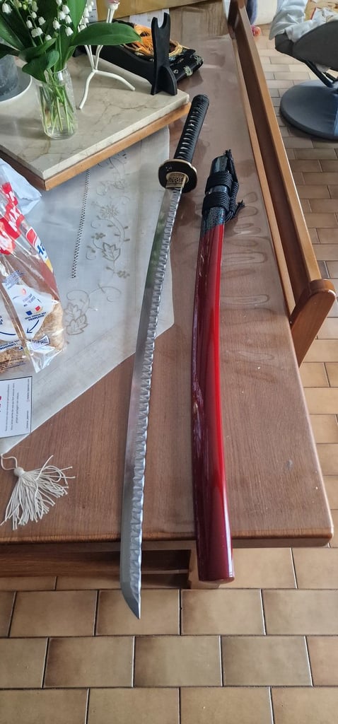 Reçu le sabre en 72h , déballage satisfaisant avec au final une pépite ! j’adore ma nouvelle acquisition avec un damas incroyable ! je recommande ce katana avec sa lame cabossée !