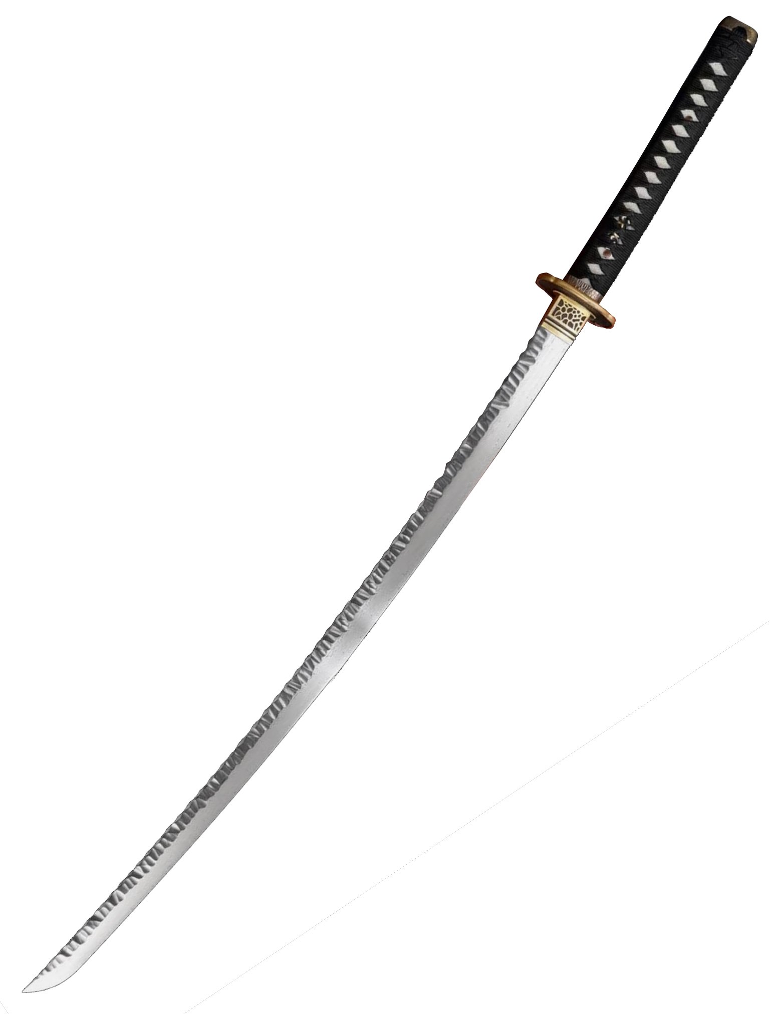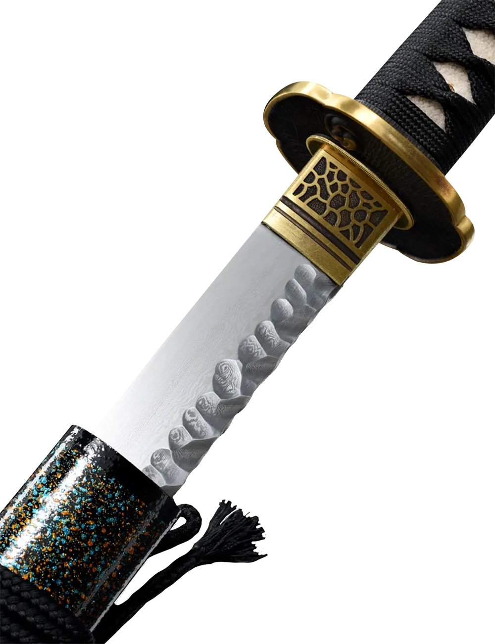 Au cœur du Japon féodal, les forgerons des clans samouraïs façonnaient des katanas non seulement comme armes, mais comme reflets de l’âme de leur guerrier. Ce katana damassé à la lame cabossée, ou « martelet », s’inscrit dans cette lignée d’objets à la fois redoutables et esthétiques. La texture irrégulière de la lame est le fruit d’un martelage volontaire, évoquant les sabres des anciens champs de bataille. Cette finition unique renforce l’authenticité de la pièce, tout en améliorant ses performances de coupe.