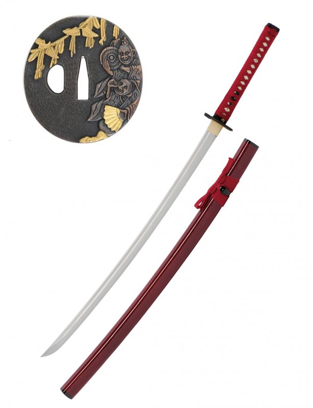 Katana NÔH Maru acier 1045 .Le tsuba montre des scènes du théâtre japonais traditionnel de Nôh, qui, bien que créé au 13ème siècle, est toujours très populaire aujourd’hui.