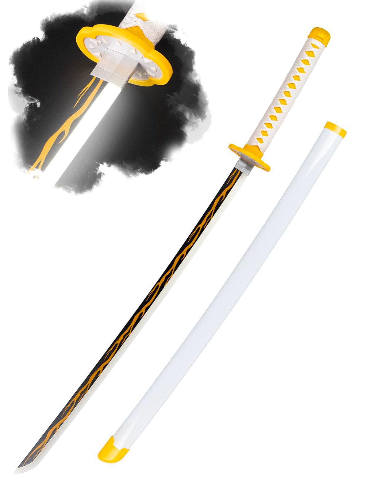 - Poignée : En imitation peau de raie jaune, enroulée de coton noir, pour un maintien fidèle au style du katana de Zenitsu.
