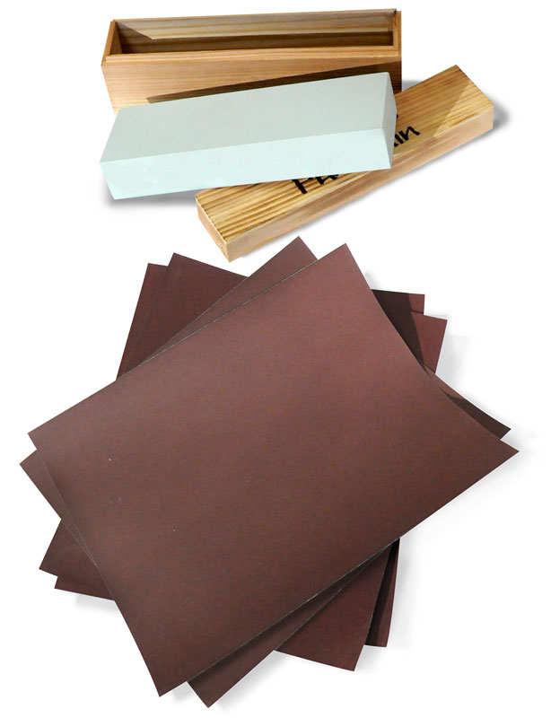 Pierre d’affûtage avec 4 papiers de verres