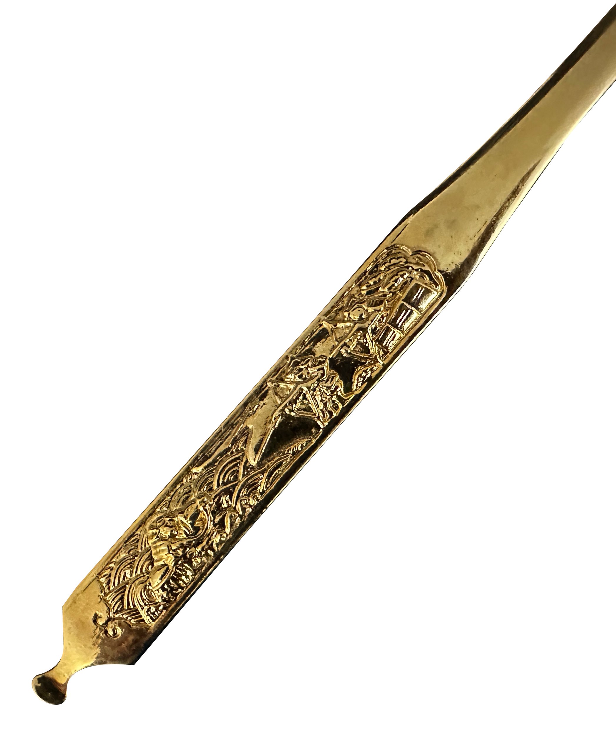 Ce Kogai Or Gravé est un ajout parfait à toute collection ou une pièce idéale pour accompagner un sabre. Sa finition dorée et ses motifs traditionnels font de cet accessoire une véritable œuvre d’art.