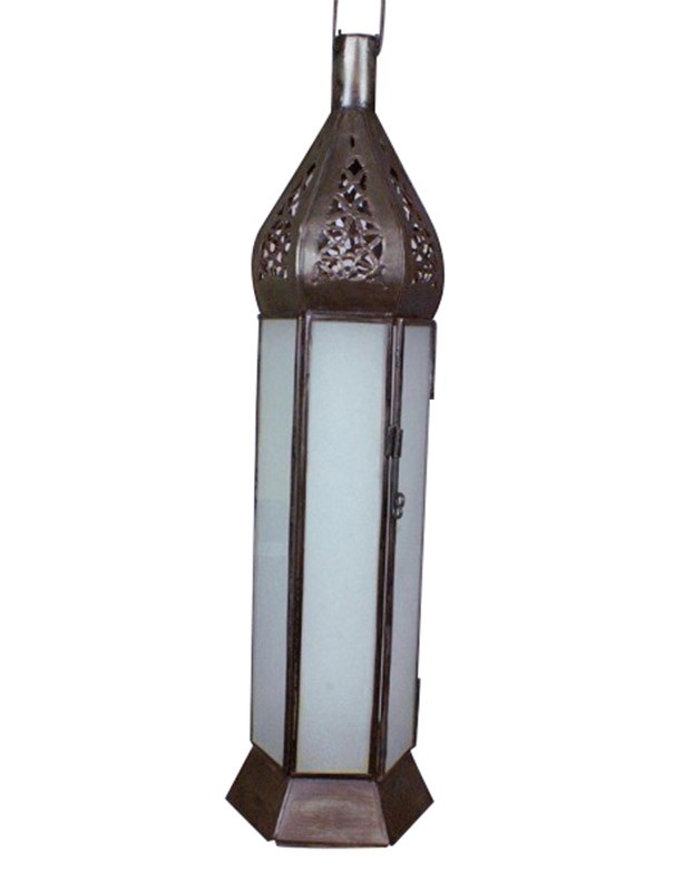 Lampe bougeoir style médiéval arabe avec des cristaux translucides.