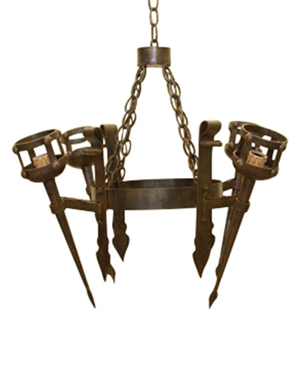 Lustre médiéval en fer forgé avec 4 lumières.