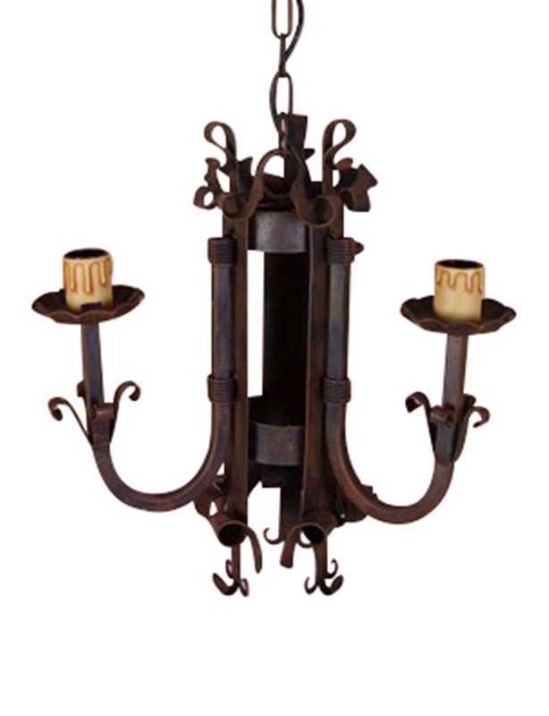 Lustre médiéval en fer forgé avec 3 lumières.