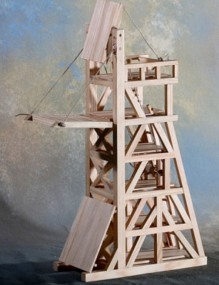 Maquette pédagogique en bois à coller et assembler : beffroi (machine de guerre médiévale).
