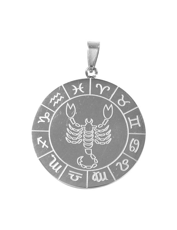 Médaille zodiacale du signe Scorpion en acier inoxydable