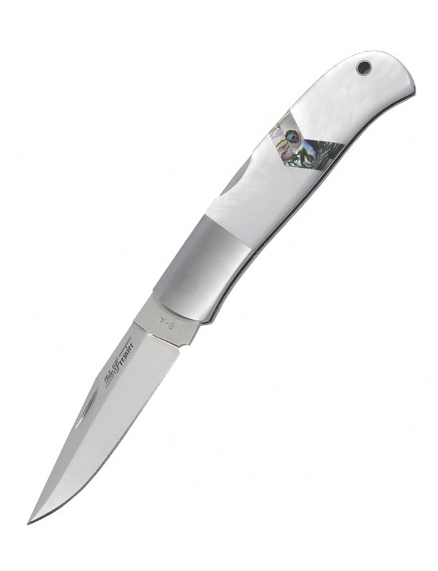 Poignée en nacre avec inserts d'ormeaux.