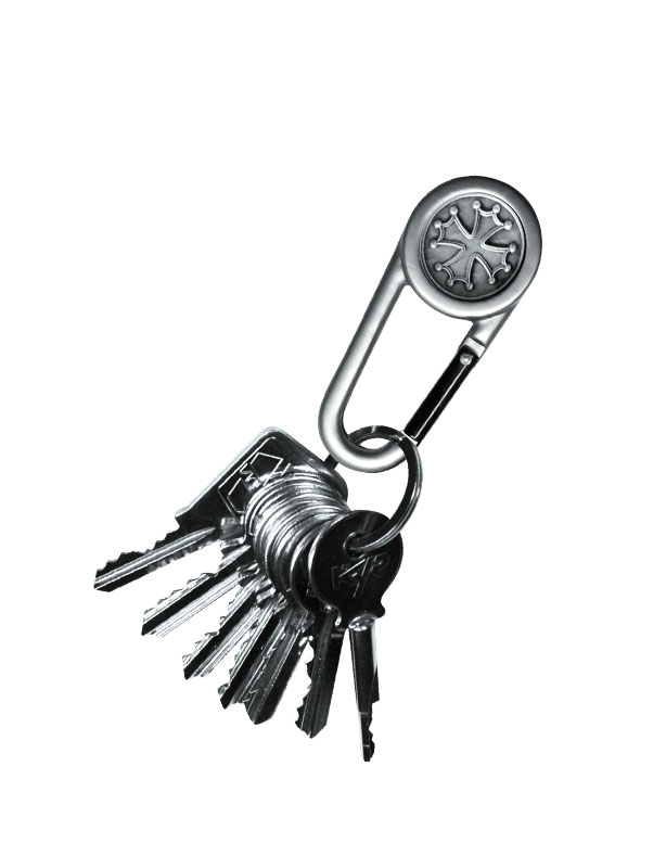 Mousqueton, porte-clés en métal, motif Croix occitane (croix de Toulouse, croix du Languedoc).