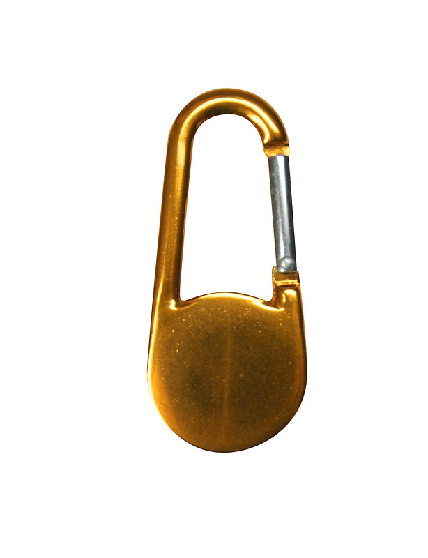 Mousqueton, porte-clés en métal couleur jaune-doré, à personnaliser.