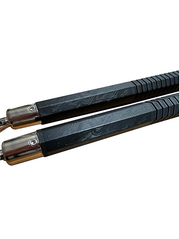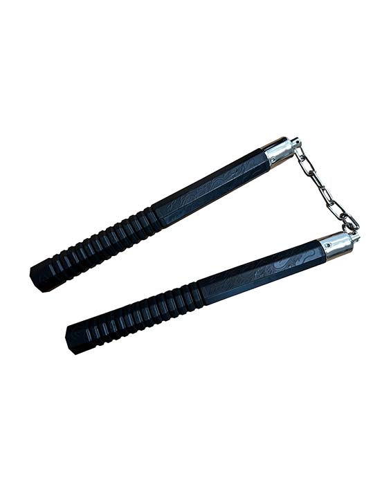 Composé de deux bâtons en polypropylène de 30 cm chacun, ornés d’un motif de dragon, ce nunchaku est relié par une chaîne en acier inoxydable, garantissant une maniabilité fluide et robuste.