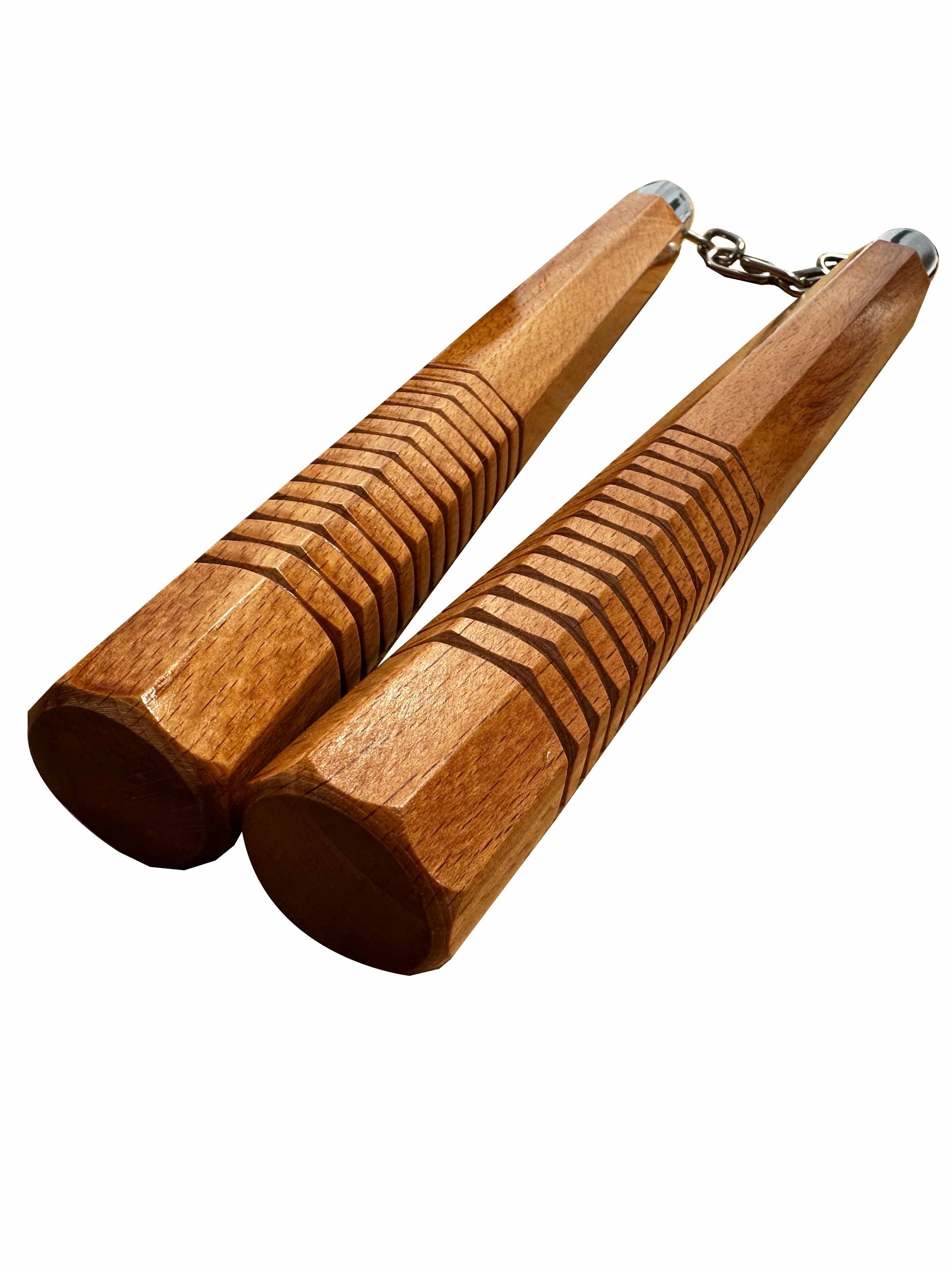 Ce nunchaku à roulement se distingue par ses deux sections octogonales (8 faces) en bois, reliées par une chaîne en acier robuste. Idéal pour les pratiquants d’arts martiaux ayant un niveau avancé, il offre un contrôle et une fluidité de mouvement inégalés.