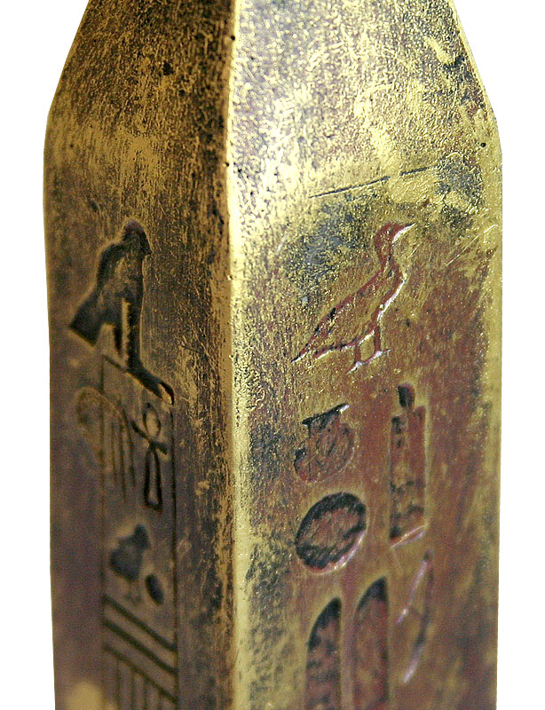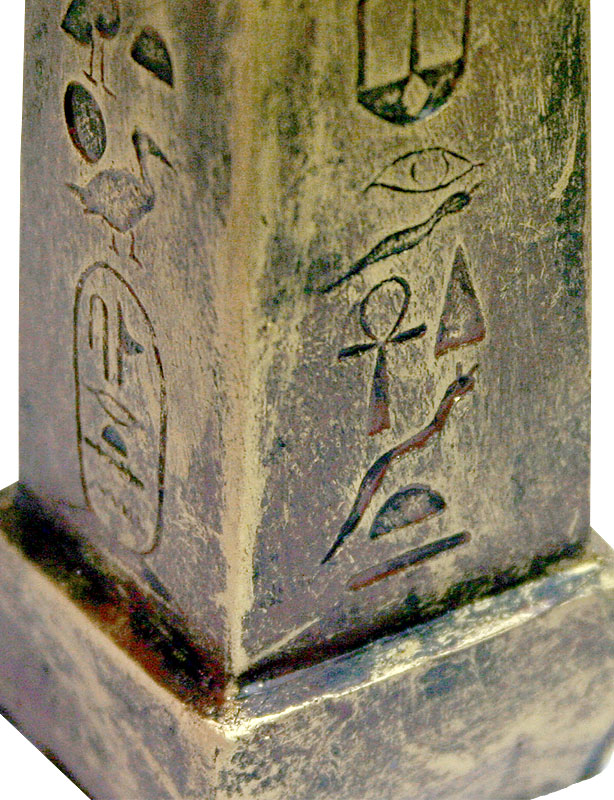 Des hiéroglyphes en bas-reliefs décorent les quatre faces.