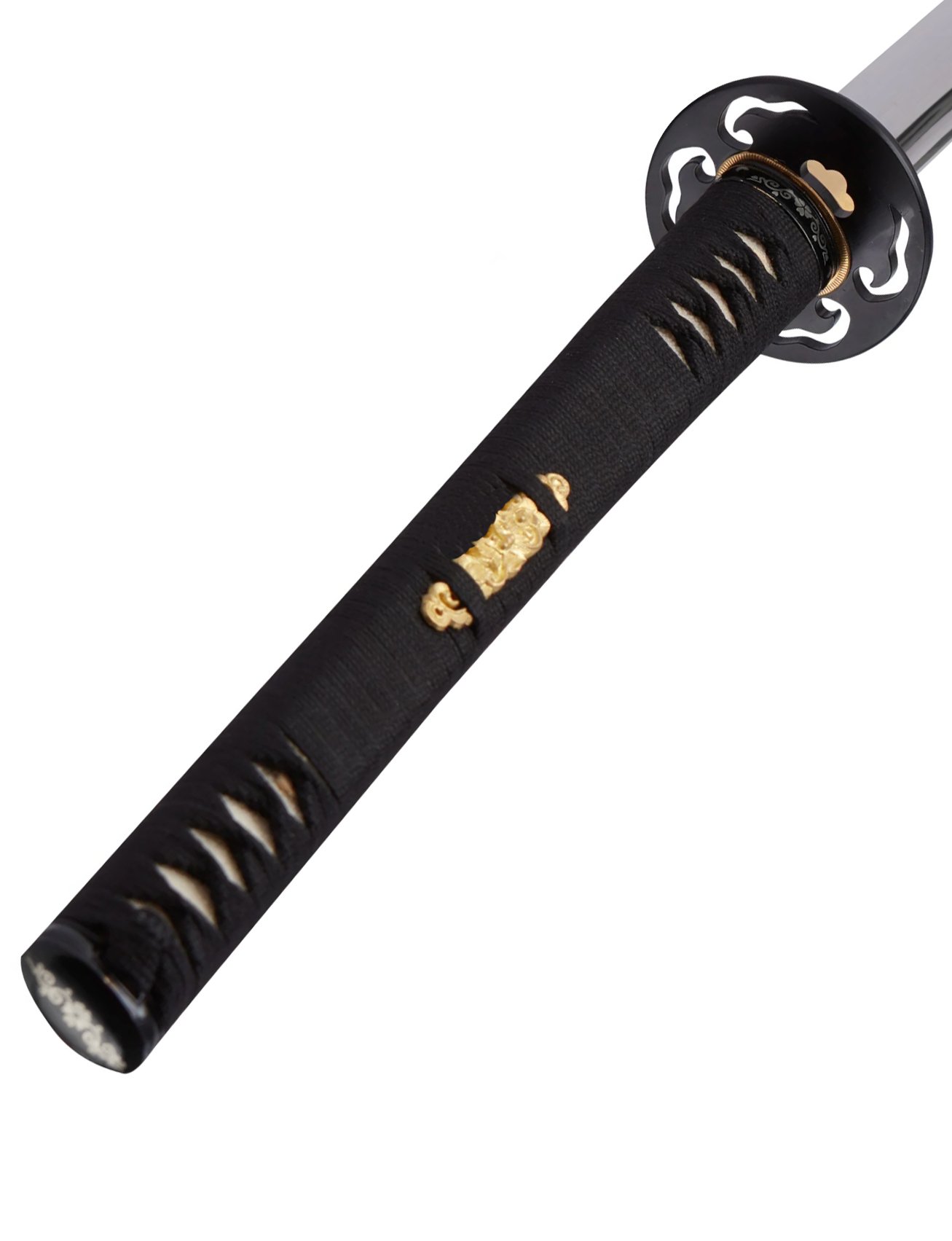 L’ōdachi Kotaï proposé par Histophile respecte ces codes historiques avec une conception pensée pour les pratiquants exigeants comme pour les collectionneurs. Sa lame en acier 1095 offre dureté, finesse d’aiguisage et excellente tenue, tandis que sa longueur totale de 157 cm délivre l’esthétique caractéristique des sabres géants. La saya grainée noir, le tressage katatemaki en soie noire et la véritable peau de raie blanche sur la tsuka signent une finition fidèle à l’esprit des forges japonaises traditionnelles.