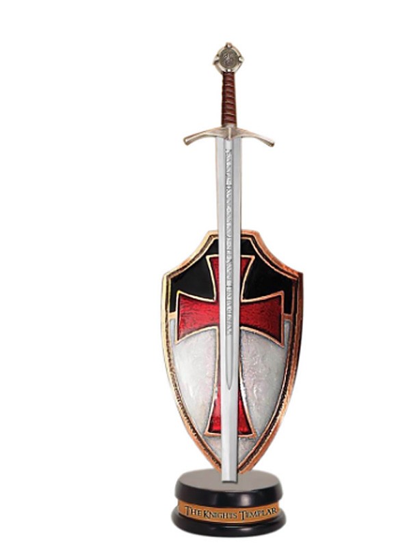 L’ouvre lettre Accolade rend hommage aux Chevaliers Templiers, l’un des ordres militaires les plus puissants et les plus riches des croisades médiévales. Avec un design très détaillé, cet ensemble comporte un épée métallique en miniature, qui fonctionne comme un ouvre-lettres, qui repose sur une base en bois. Le socle est mis en évidence par un bouclier émaillé avec les armoiries des Templiers montrés des deux côtés.