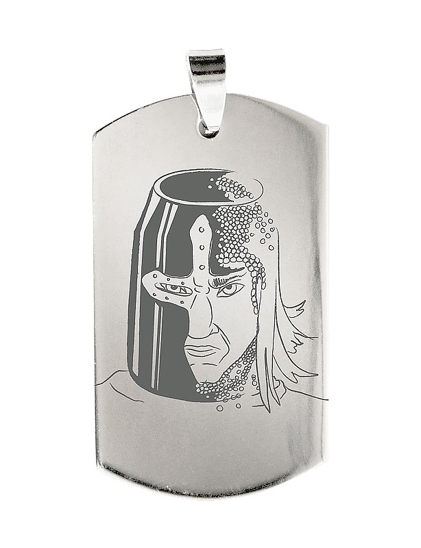 Pendentif en acier inoxydable, avec gravure laser d’un côté : Tête de chevalier avec heaume (réalisation Histophile).