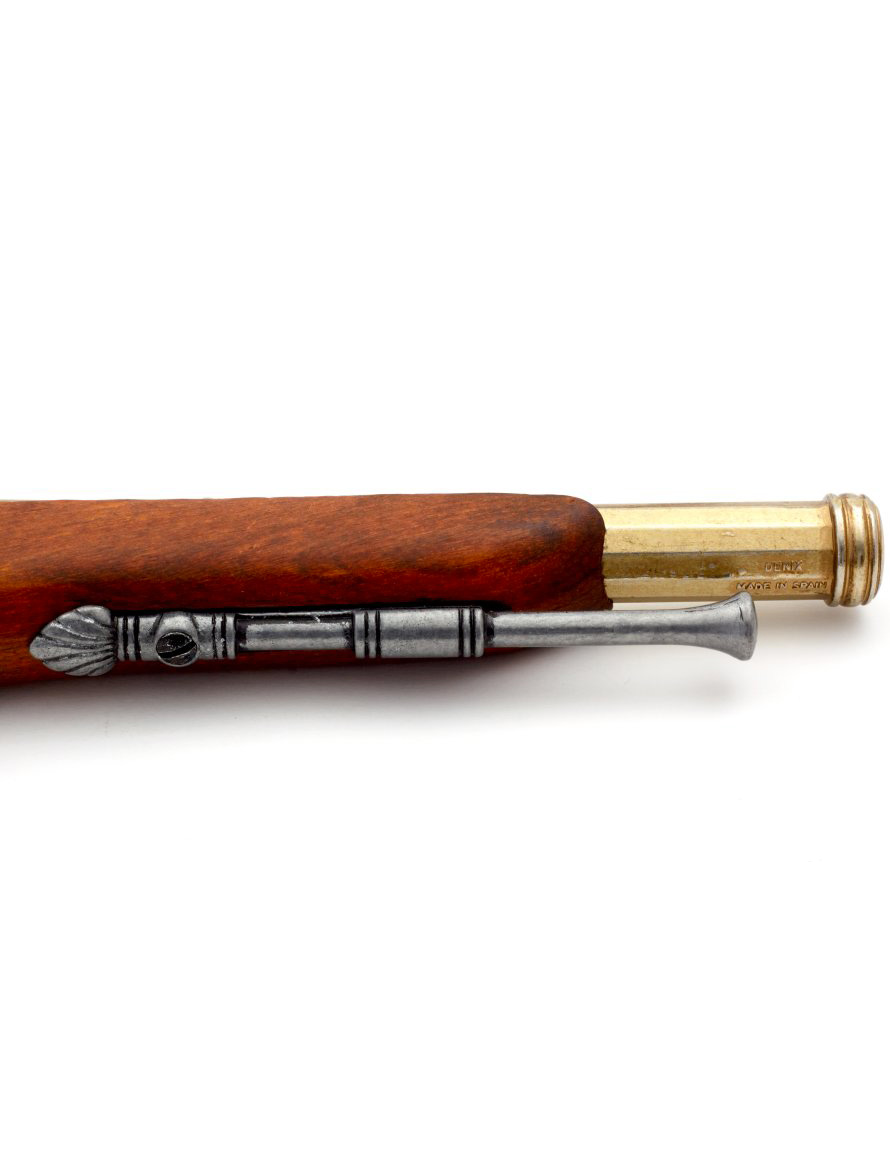 Ce pistolet de Brescia, une région réputée pour ses armuriers, est une reproduction d’une arme de l’année 1825. Il représente fidèlement les armes utilisées entre les XVIe et XIXe siècles, période riche en innovations et en conflits.