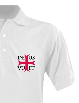 Polo templier blanc « Deus + Vult »