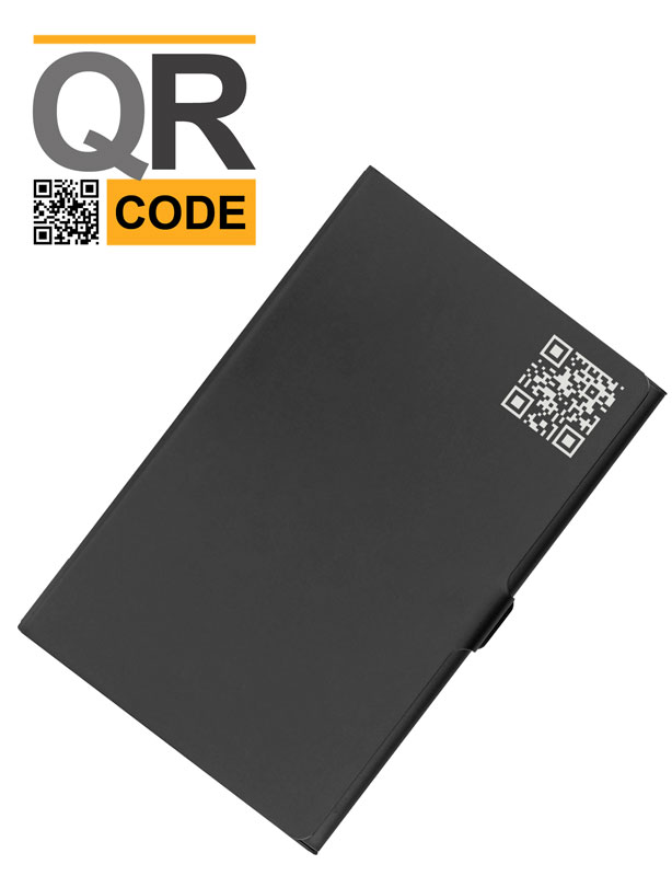 Porte-carte de visite ou de crédit en métal de couleur noire, avec un QR code à personnaliser (gravure laser).