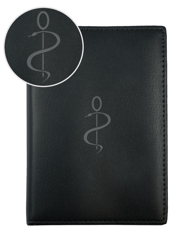 Porte-papier en cuir noir, avec symbole de l'ordre des médecins gravé au laser.