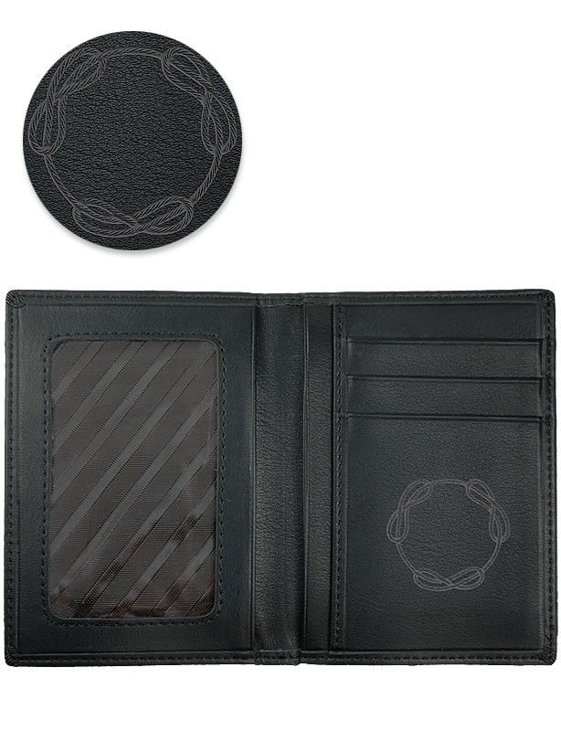 Porte-papiers en cuir noir avec intérieur gravé : lacs d'amour.