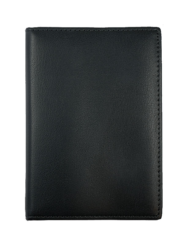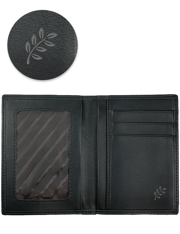 Porte-papiers en cuir noir avec intérieur gravé : branche d'acacia.