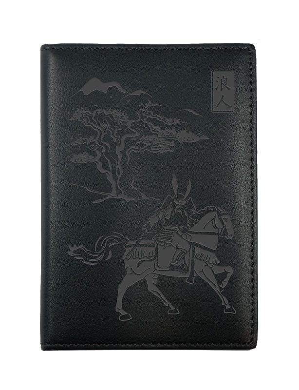 Porte-papiers en cuir noir avec couverture gravée : Ronin (samouraï sans maître).