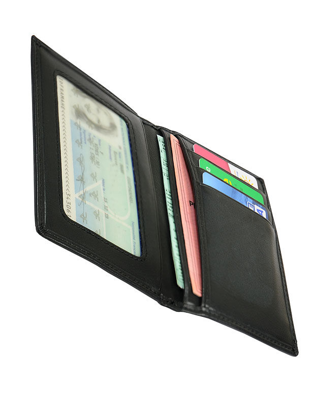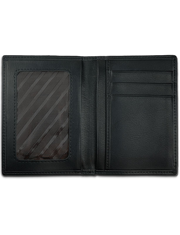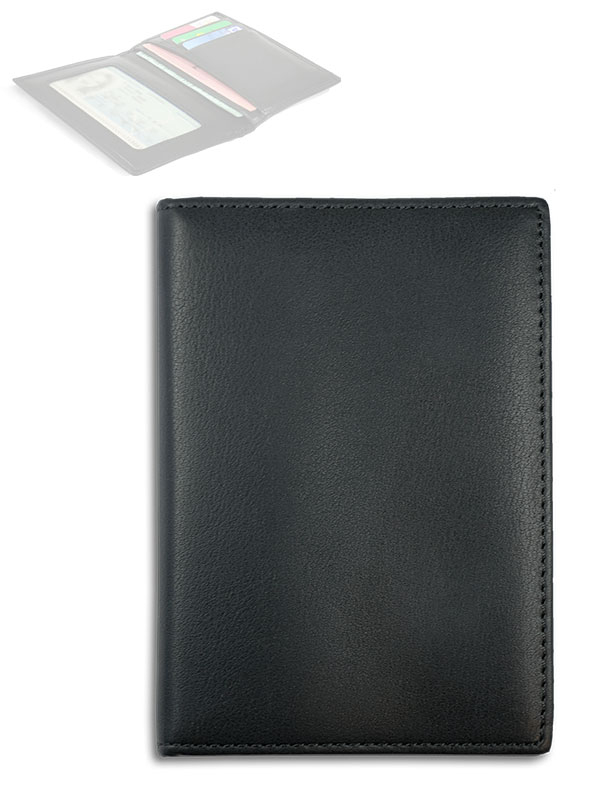 Porte-papiers en cuir véritable de couleur noir.