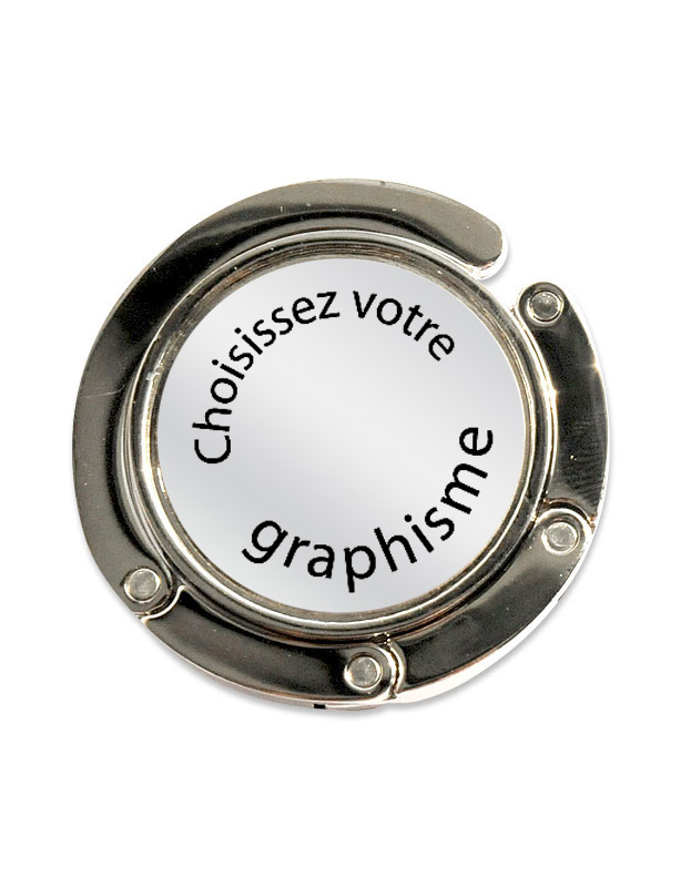 Porte-sac magnétique en métal, avec pastille argentée à personnaliser avec un visuel (gravure laser, couleur noire).