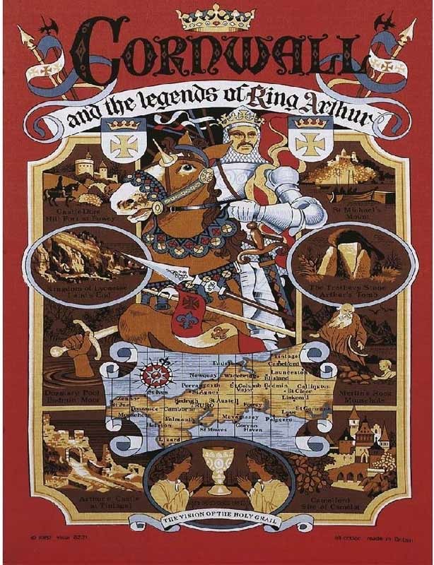 Poster en tissu représentant différents éléments de la légende arthurienne.