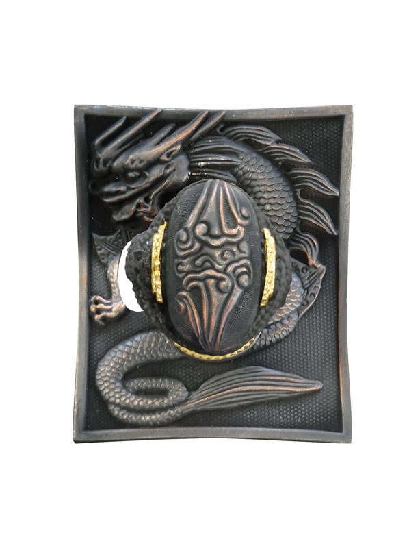 – Tsuba en alliage à base de zinc moulé, cuivré et noirci