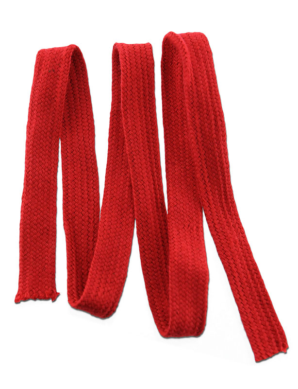 Sageo en synthétique rouge, destinée à maintenir le saya (fourreau) sur le obi (ceinture) lorsque le sabre est porté à la ceinture.