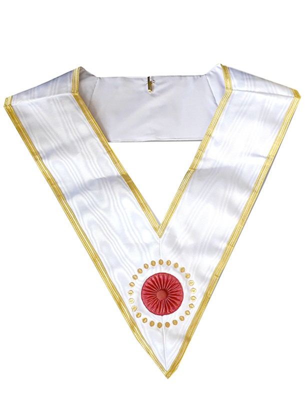 Le ruban blanc qui constitue la base de ce sautoir évoque la pureté et la quête de la vérité, valeurs fondamentales de la tradition maçonnique. Ce ruban, drapé avec finesse, arbore avec dignité les couleurs emblématiques de la GLDF, témoignant ainsi de l’appartenance à cette honorable institution.