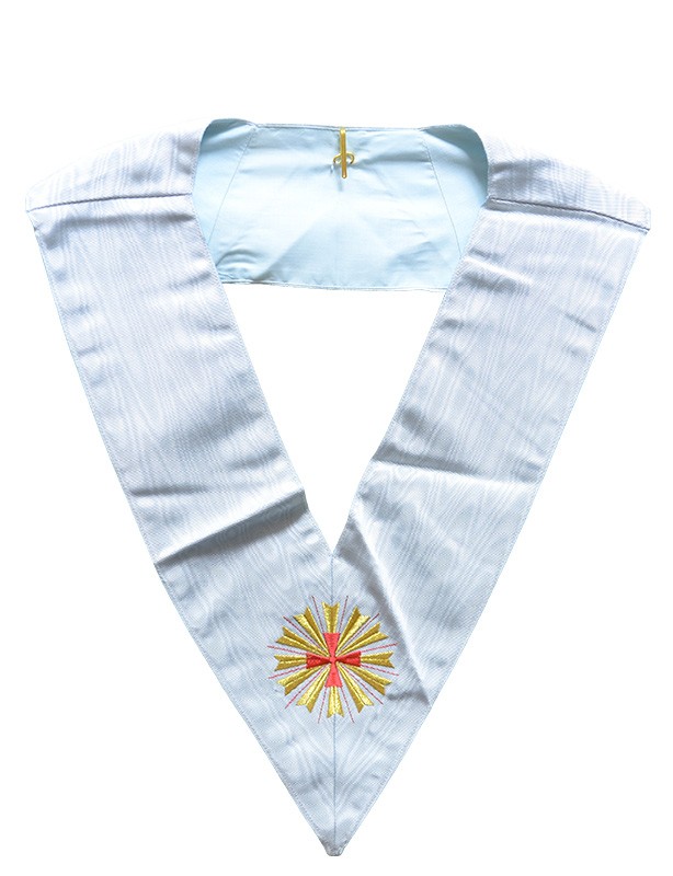 Le Sautoir Vénérable Maître du Rite Français Régulateur 1801 est un symbole de distinction et de respect dans la franc-maçonnerie. Confectionné avec un ruban moiré de 11 cm de large, ce sautoir représente le grade de Passé Vénérable. Son dos bleu est caractéristique de ce rite prestigieux, témoignant de son histoire et de sa tradition.
