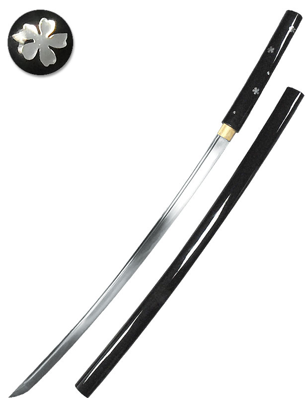 Saya et tsuka laquées noir avec fleurs et pétales nacrés.