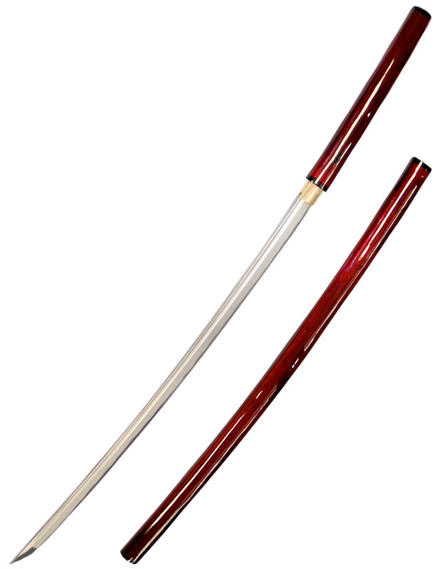 - Saya et Tsuka en Bois Laqué Rouge Sombre : Élégance sinistre, extrémités peintes en noir laqué.