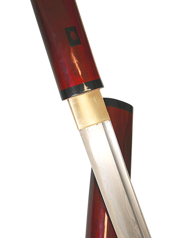 – Tsuka et saya en bois verni rouge sombre et extrémités en noir