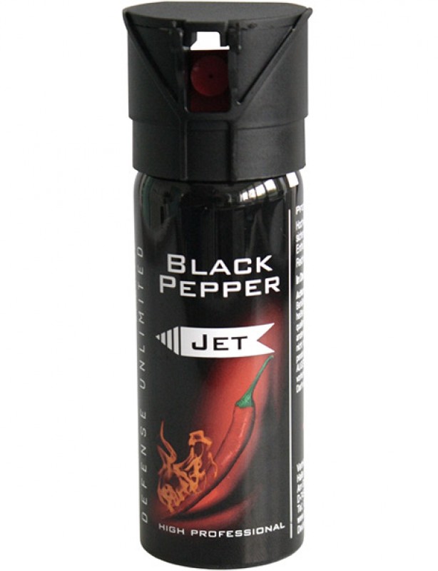 Black Pepper Jet 50 ml avec spray pour un effet ciblé. Portée jusqu'à 5 mètres. Contient 11% d'oléorésine de capsicum.