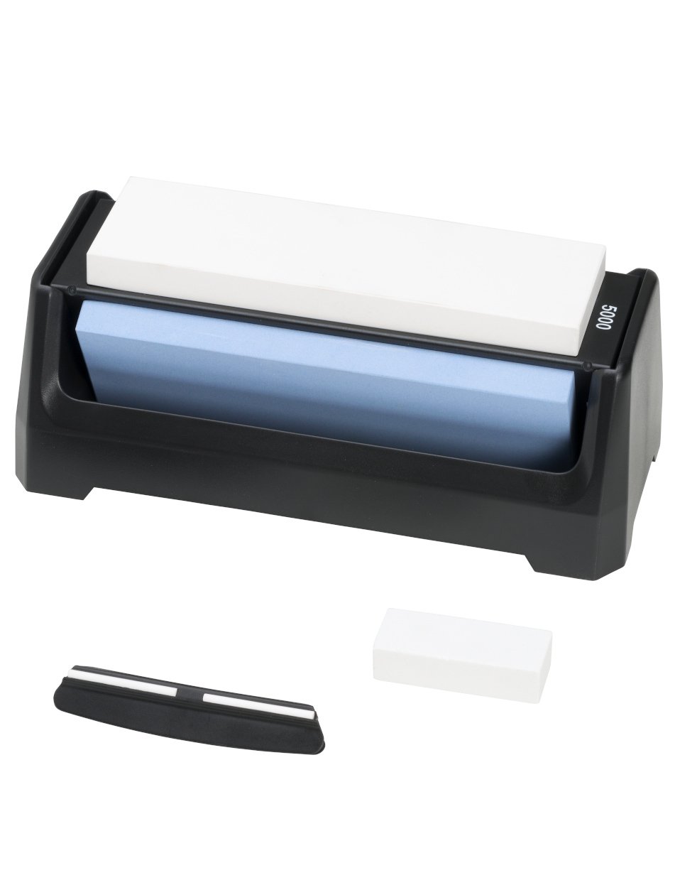 Facilitez l’affûtage de vos couteaux préférés avec notre pierre à affûter polyvalente. Son design 3-en-1 offre un aiguisage grossier, moyen et fin, assurant une efficacité maximale. Le socle antidérapant comprend un réceptacle pour l’eau de sharpening. Livré avec une pierre de dressage et un guide d’affûtage.