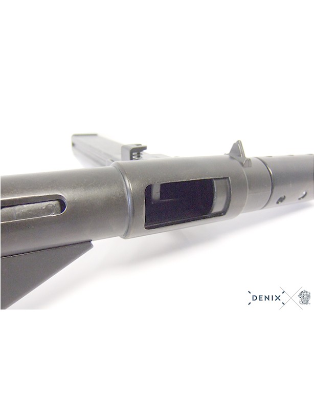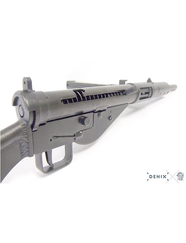 Cette réplique est strictement identique au modèle original, tant par ses dimensions que par son design caractéristique. Elle restitue fidèlement l’esthétique brute et fonctionnelle qui a fait la réputation de la Sten Mark II, largement utilisée par les forces britanniques, du Commonwealth, les troupes aéroportées ainsi que les réseaux de résistance à travers l’Europe occupée.