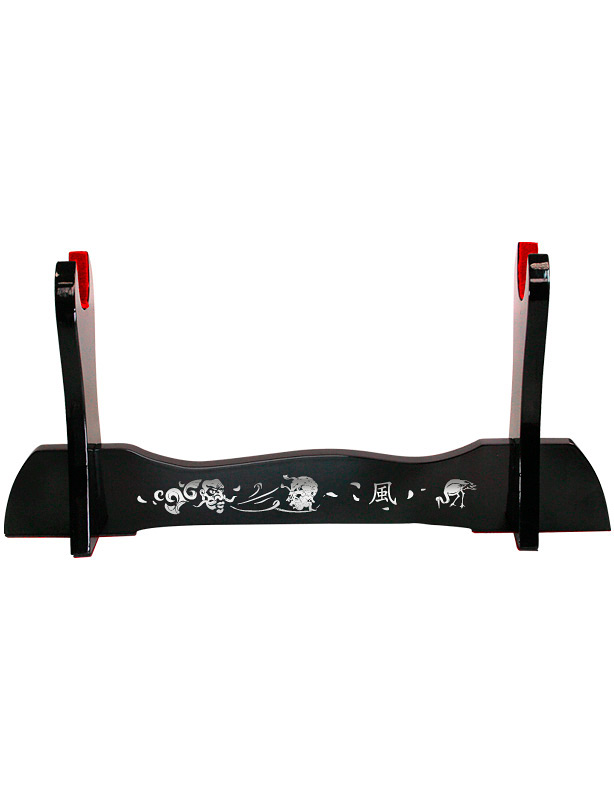 Support en bois laqué noir pour le rangement et la présentation d'un katana ou d'un iaïto (Livré sans sabre).