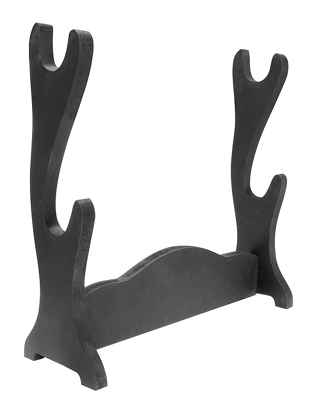Support deux places en bois noir mat, pour ranger / présenter deux katanas ou iaïtos (livré sans sabre).