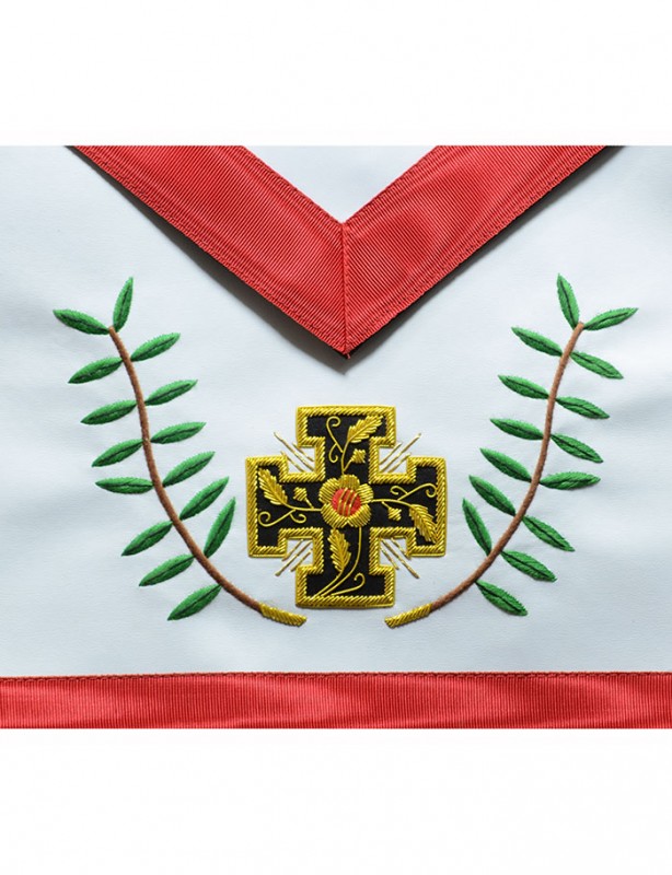 Le tablier du 18ème degré du Rite Écossais Ancien Accepté (REAA) est un élément essentiel de la tenue des Chevaliers Rose-Croix. Ce grade, qui incarne la quête de sagesse, d’élévation spirituelle et de perfection, marque une étape clé dans le parcours maçonnique. Ce tablier représente non seulement l’engagement du franc-maçon, mais aussi l’importance des valeurs de tolérance, d’amour et de connaissance.
