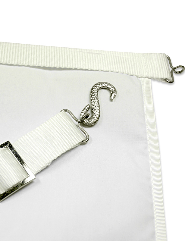 Les bordures blanches qui ornent le tablier incarnent la pureté et la clarté des intentions du maçon en quête de connaissances et d’élévation. Elles soulignent également le cheminement du néophyte vers la maîtrise, symbolisant la progression au sein de la confrérie.