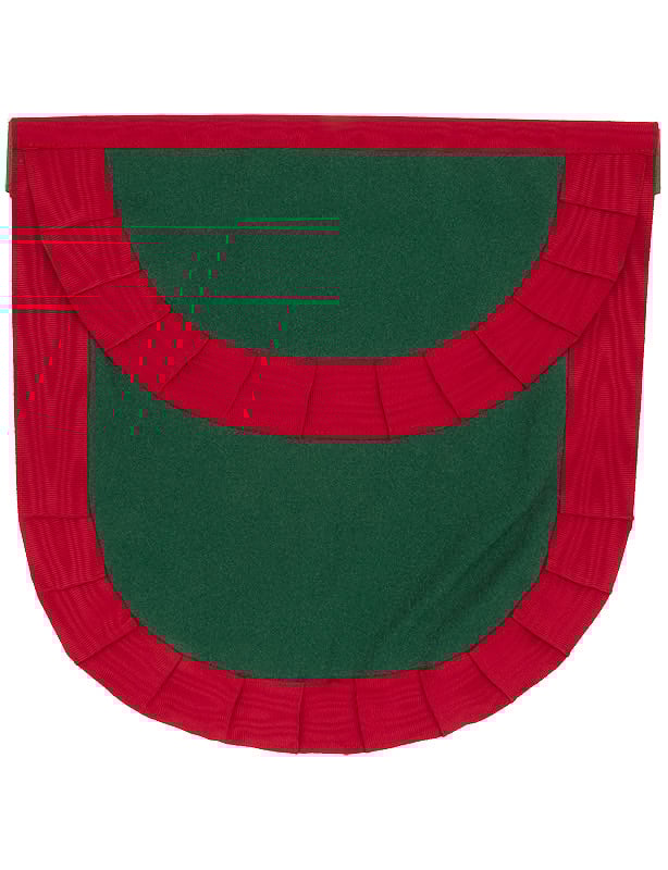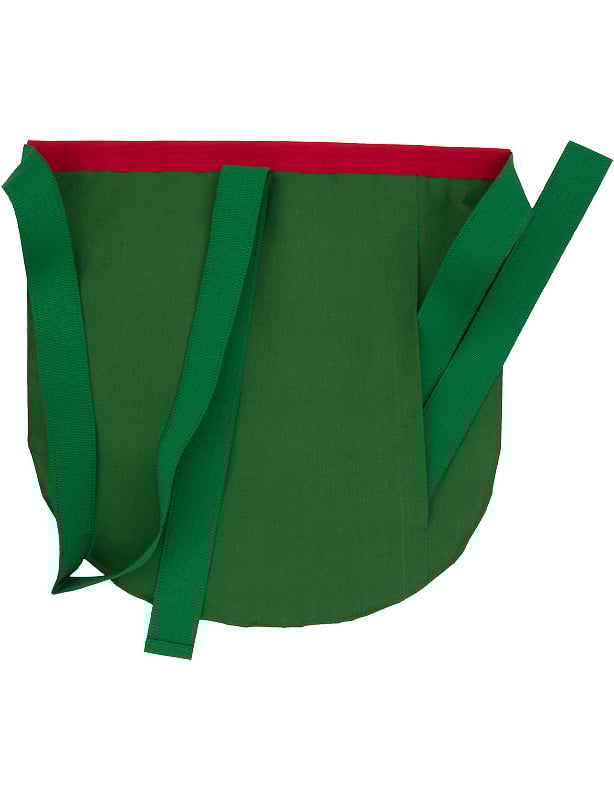En coton vert avec bordures en coton rouges plissées, bavette rabattable arrondie.