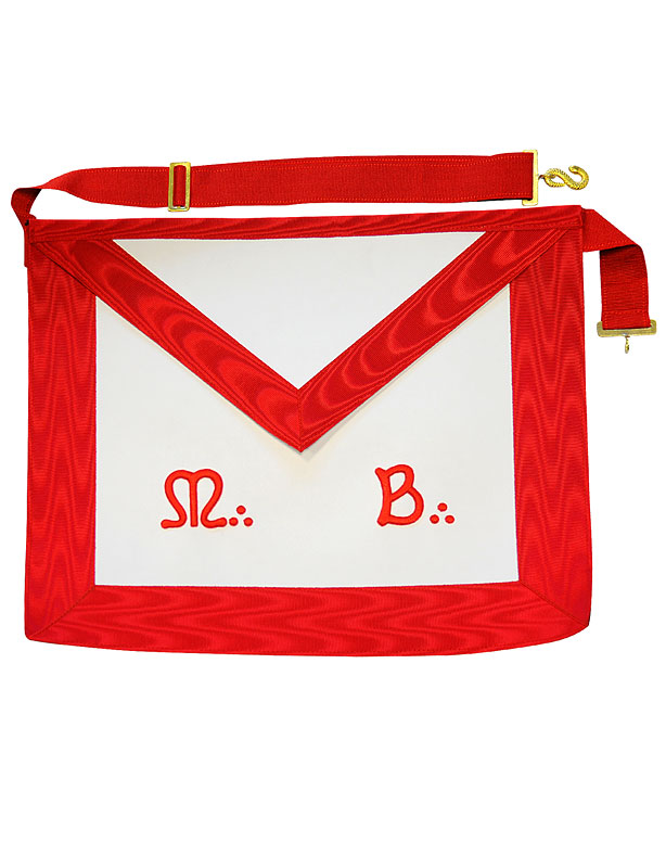 Tablier maçonnique de Maître, en Agneline, avec bordures, lettre M:. B:. de brodées en rouge.