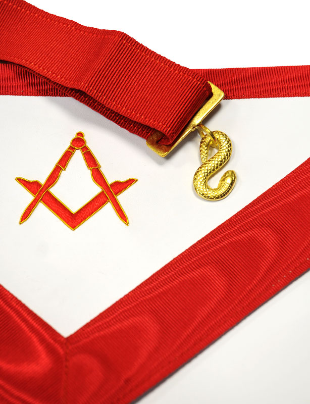 Le tablier est l’un des emblèmes les plus forts de la franc-maçonnerie. Son évolution accompagne le parcours initiatique du maçon, marquant ses progrès dans l’Ordre. Le modèle destiné au Maître Maçon se distingue par ses bordures rouges, qui rappellent l’engagement et la transmission du savoir.